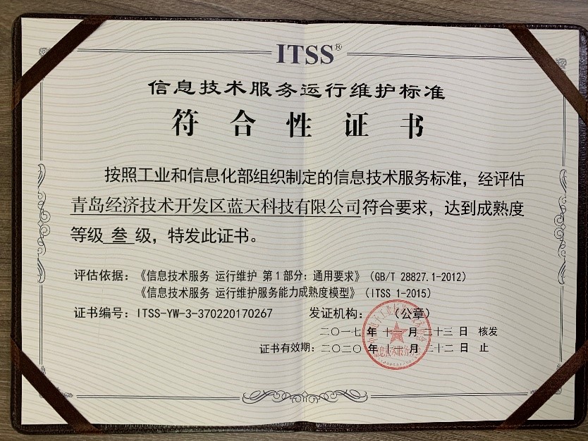 2017.11 公司荣获信息技术服务运行维护标准-ITSS3级