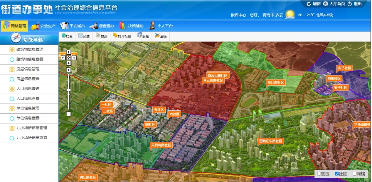 通过”互联网+”形式,打通镇街、管区、社区三级信息网络,实现全镇街信息共享和业务领域全覆盖。按照“条块联动、属地为主、分级管理、责任到人”的原则,建设“社会治理大数据平台”,逐步实现“小事不管区,大事不出镇街,矛盾不上交”的创新社会治理模式。同时充分挖掘数据内在价值,为领导决策提供依据。最终实现全镇街上下一盘棋,做到治理效果持续化、指挥调度实效化、监督跟踪常态化、管理服务智能化。