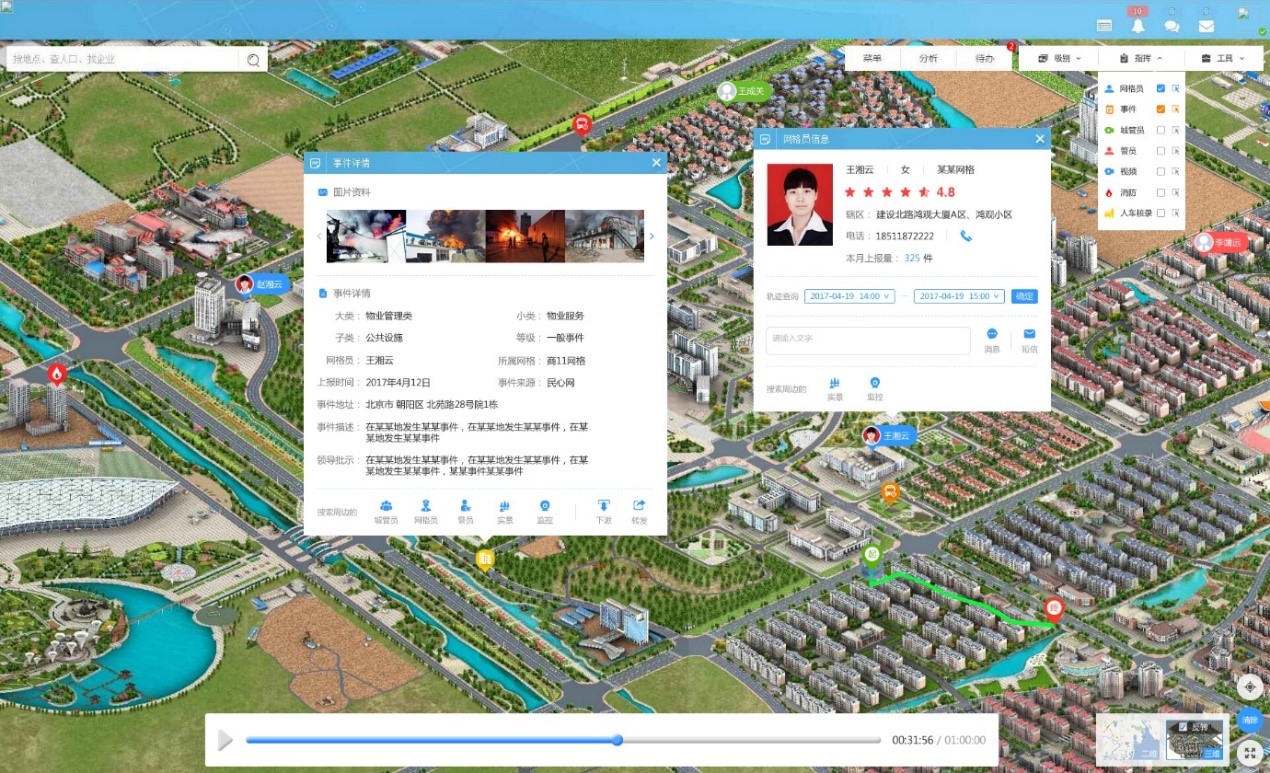 数据点面分析,区域分析,大数据挖掘;应急管理、指挥调度、绩效考核(部分考核、区域考核、岗位考核)。